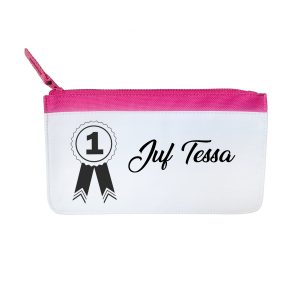 Etui met opdruk passend bij de kaart “juf goud”, “meester goud” of een opdruk naar keuze.