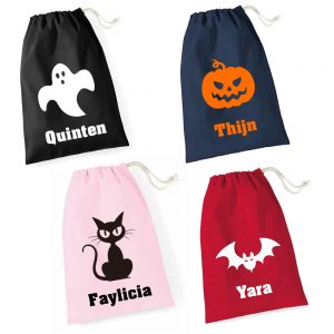Ga langs de deuren en verzamel je snoepjes in dit toffe Halloween zakje met naam. Superfijn om vanaf nu elk jaar te hergebruiken!