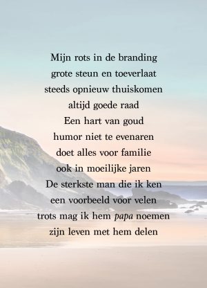 Dubbele (wens)kaart inclusief envelop met origineel Pilula gedicht op de voorkant met een illustratie van een rots in de branding.