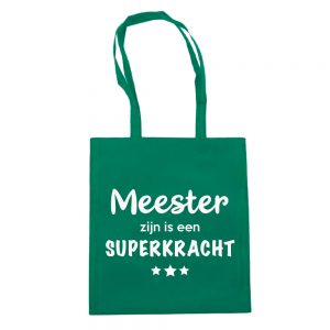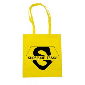 Katoenen tas met lang hengsel met superkracht ontwerp of eigen tekst.